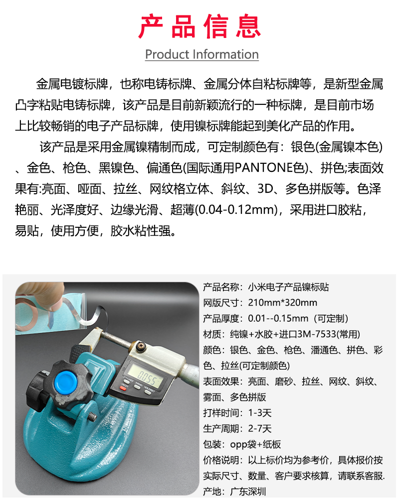 鎳片薄標牌